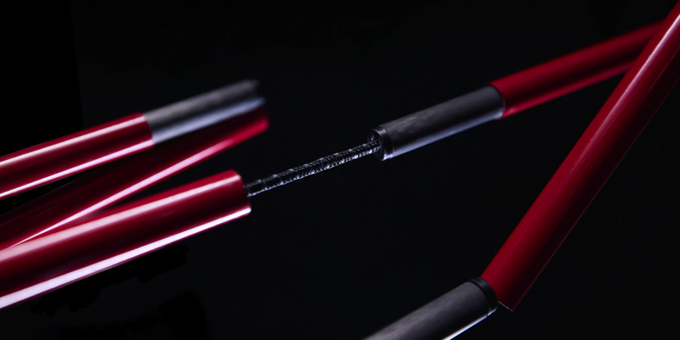 SAMAYAは新たに、Carbon_X™ポールを開発しました。ポール本体は、ドレープカーボンファイバー構造を採用。破損時にポールが細かく破片化するリスクを軽減し、万が一折れた際の緊急処置がしやすくなります。また、ポール同士のジョイント部=オス側をアルミからカーボンに変更することで、異なる素材の組み合わせに伴うストレスを避けることができます。また、ポールの赤色と接合部の黒色のコントラストにより、正しく組み合わされていることが容易に確認できるため、使用中に破損する危険性が低くなっています。
