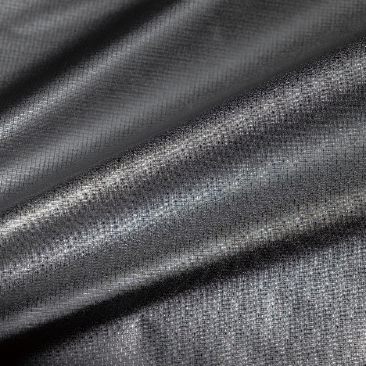 分子レベルのチタンをナイロン生地に吹き付ける「スパッタリング」という高度な技術を用いており、生地本来の軽さや透湿性を失うことなくナイロン生地に超薄膜のチタンコーティングを施しています。