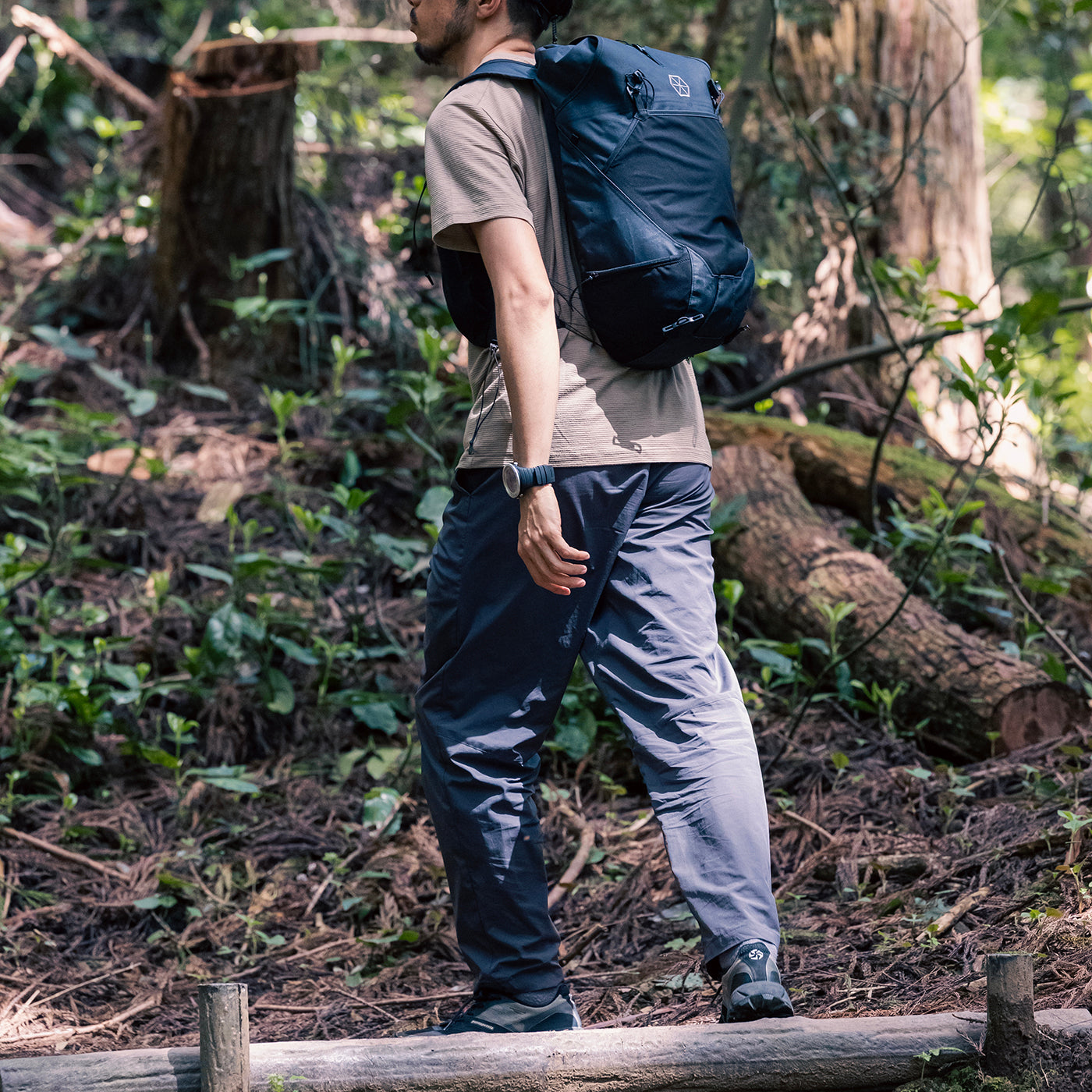 生地は薄すぎず厚すぎずハリコシのある生地で通年しっかりと使っていただけます。昨シーズンモデルから生地変更のアップデートをしました。植物由来50%のポリエステル100%生地は昨シーズンモデルよりもストレッチ性が増し動きやすく、驚くほど早く乾き、蒸れにくいのが特徴です。
